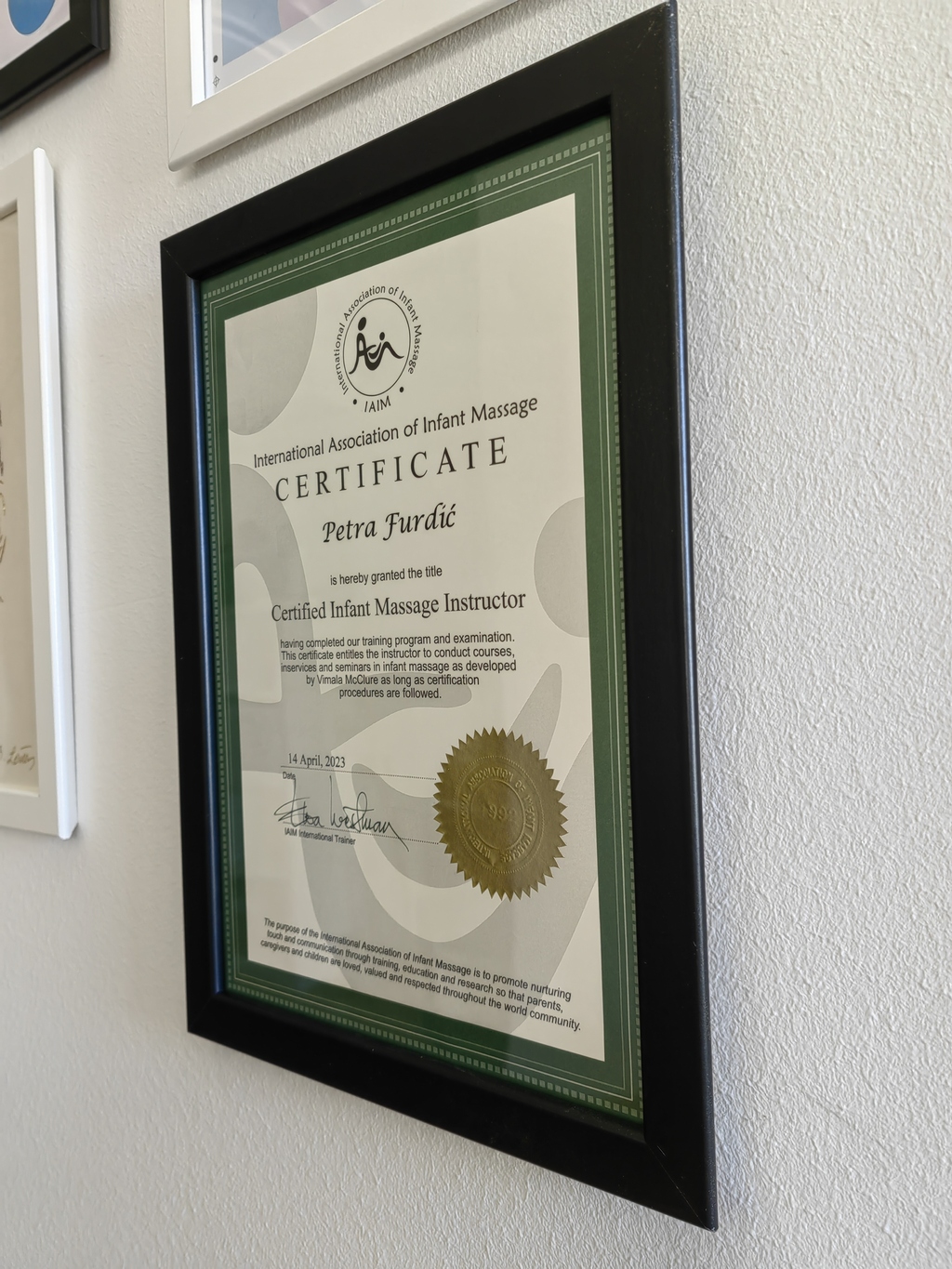 IAIM (International Association of Infant Massage) program temelji se na ideji da je dodir prvi jezik djeteta i najvažniji način povezivanja roditelja i bebe.